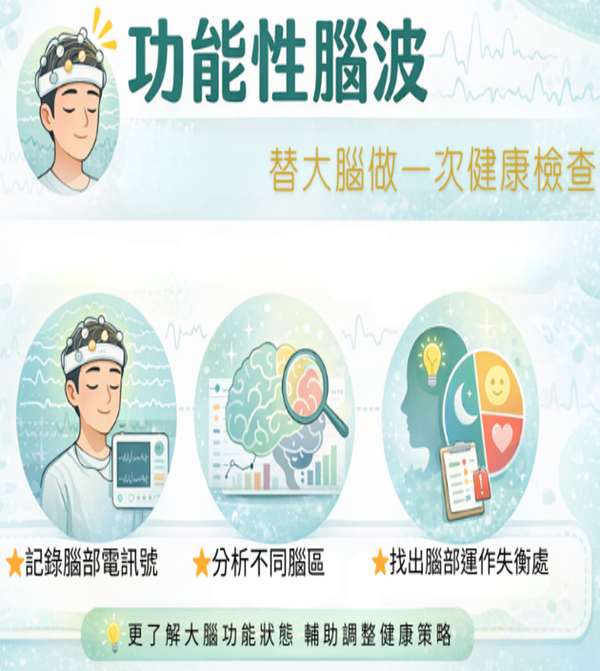 和一般只看「有沒有異常」的腦波檢查不同,功能性腦波更著重於整體大腦是否運作平衡,能幫助了解與專注力、情緒穩定度、睡眠品質及壓力反應相關的狀況。