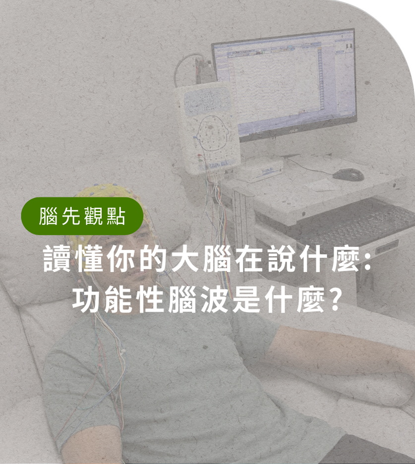 功能性腦波是一種用來了解大腦目前運作狀況的檢測方式,透過在頭皮上放置感測器,記錄大腦發出的微弱電訊號,觀察不同腦區在放鬆或進行任務時的活動情形。