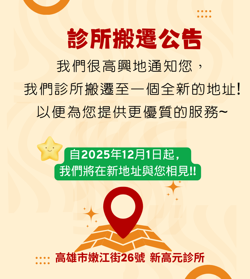 診所搬遷後,我們將努力確保您的預約不受影響,如有任何問題需要重新安排您的預約,請隨時聯繫診所!我們樂意為您提供幫助。