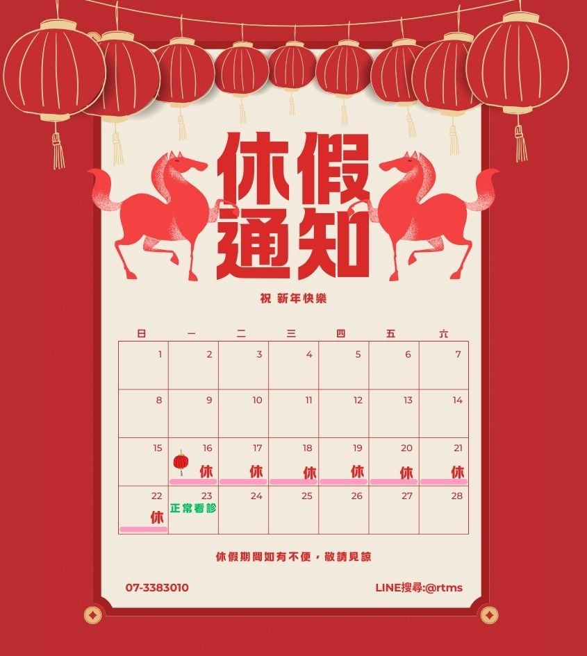 因應農曆春節假期,本診所將於指定日期暫停門診服務,