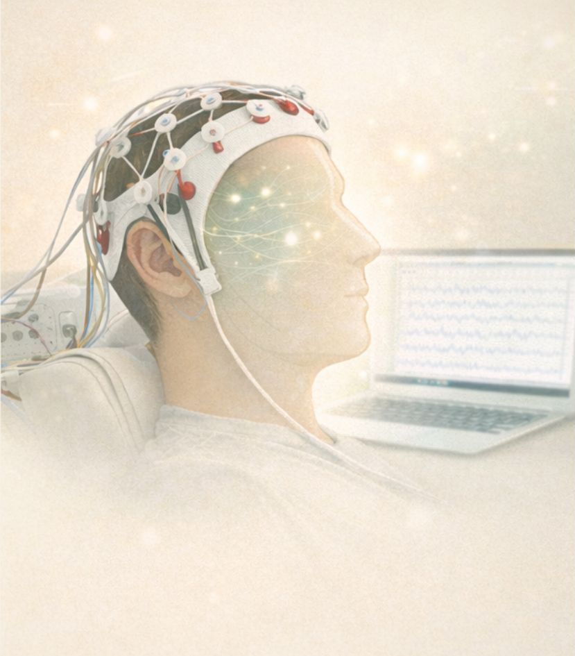 透過在頭皮上放置感測器,記錄大腦自然產生的電訊號,